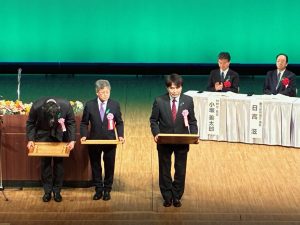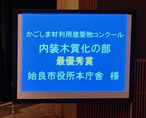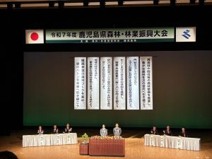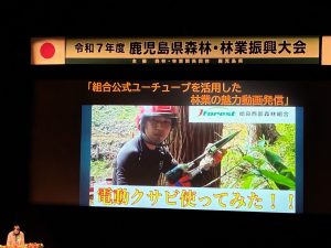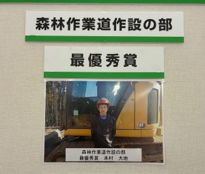 カクイックス交流センター(県民ホール)で開催され、林業技術競技会の森林作業道作設の部で当森林組合現場技能班員の本村大地君が最優秀賞を受賞しました。活動事例発表では「組合公式You Tubeを活用した林業の魅力動画発信」と題して当組合現場技能班員の前畑太輝君が発表を行いました。 また、かごしま材利用建築物コンクールの内装木質化の部で姶良市役所本庁舎が選ばれ湯元市長に表彰状が授与されました。
